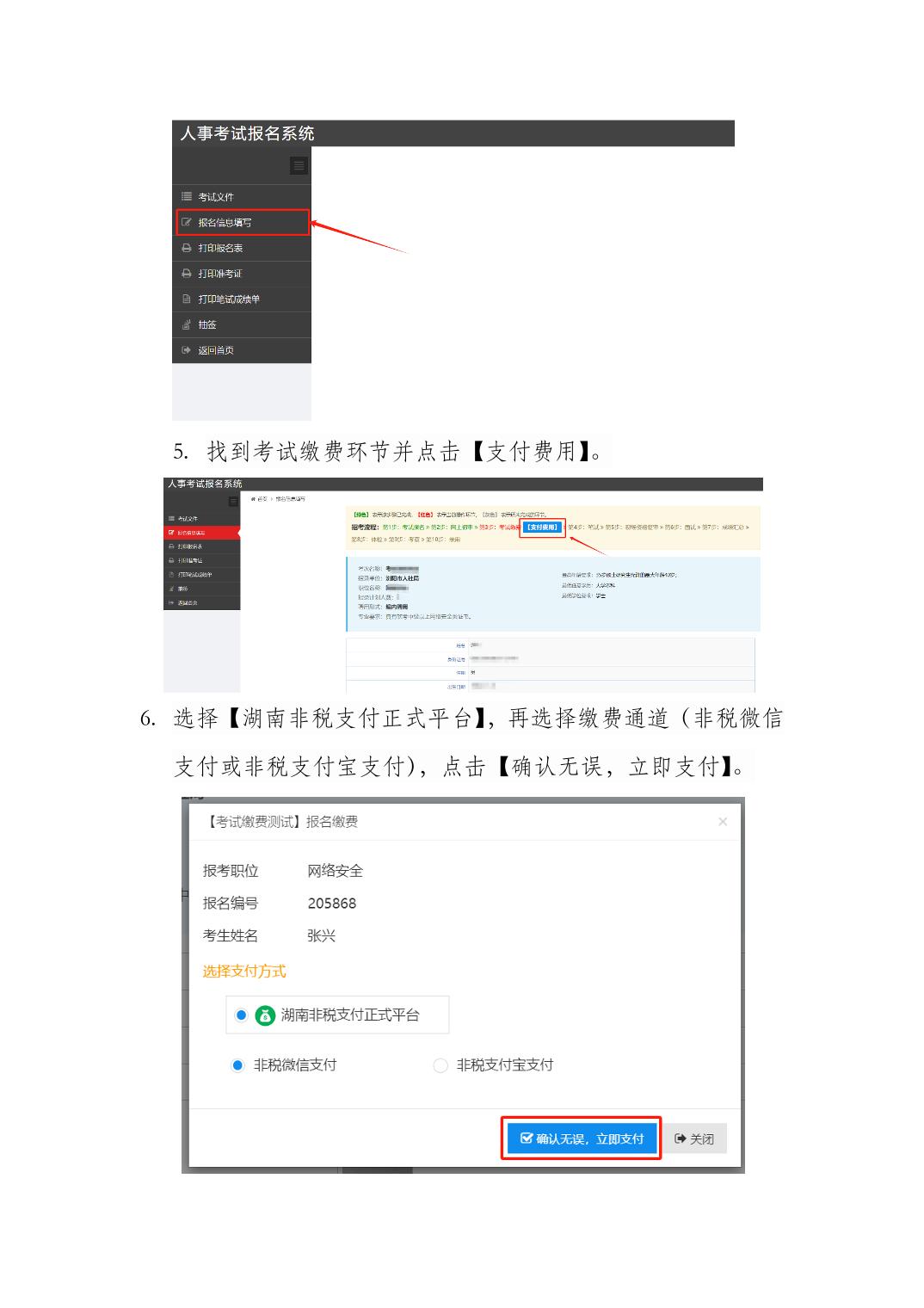 瀏陽市人事考試?yán)U費(fèi)操作指南